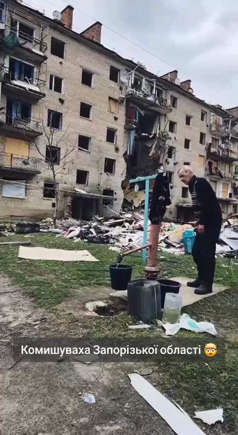 This is what life looks like in the frontline settlement of Komyshuvakha, according to footage shared on social media.