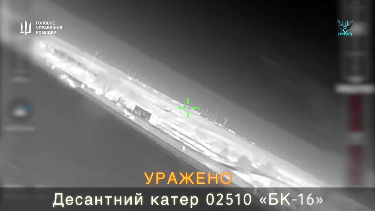 Footage captures the moment a Russian BK-16 landing craft near Crimea was struck by a drone operated by the Defense Intelligence of Ukraine (HUR), special unit “Prymari” (“Ghosts”). In the same operation, a Pantsir-S1 air defense missile-gun system and a Nebo-U radar system were also hit. The strike highlights the continued use of precision drone operations targeting Russian military assets in occupied territories and surrounding waters.